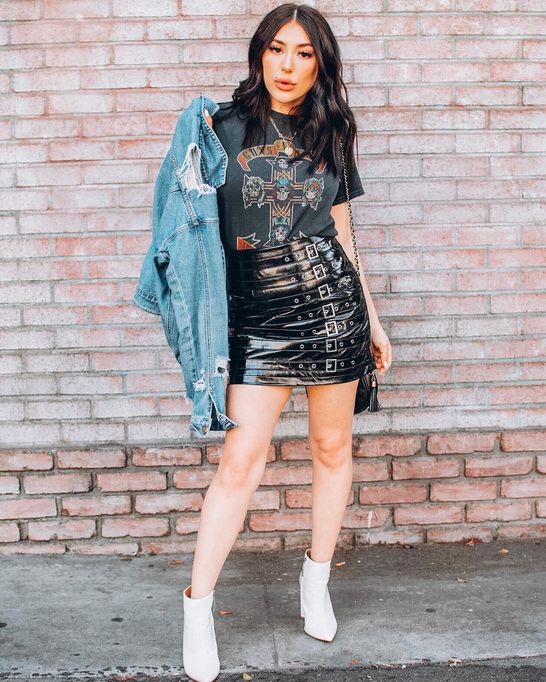 10. T-shirt + saia de vinil é uma produção certeira