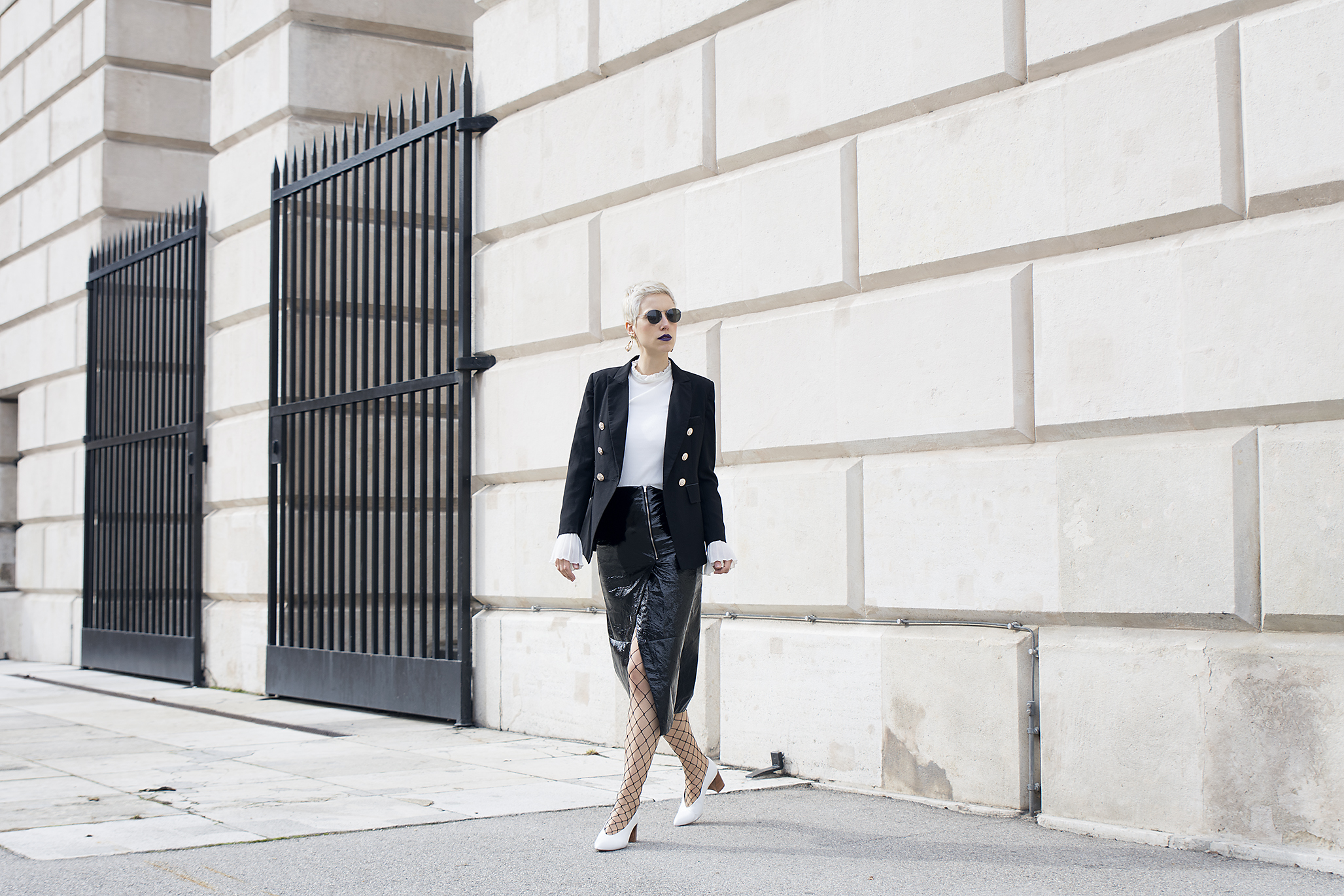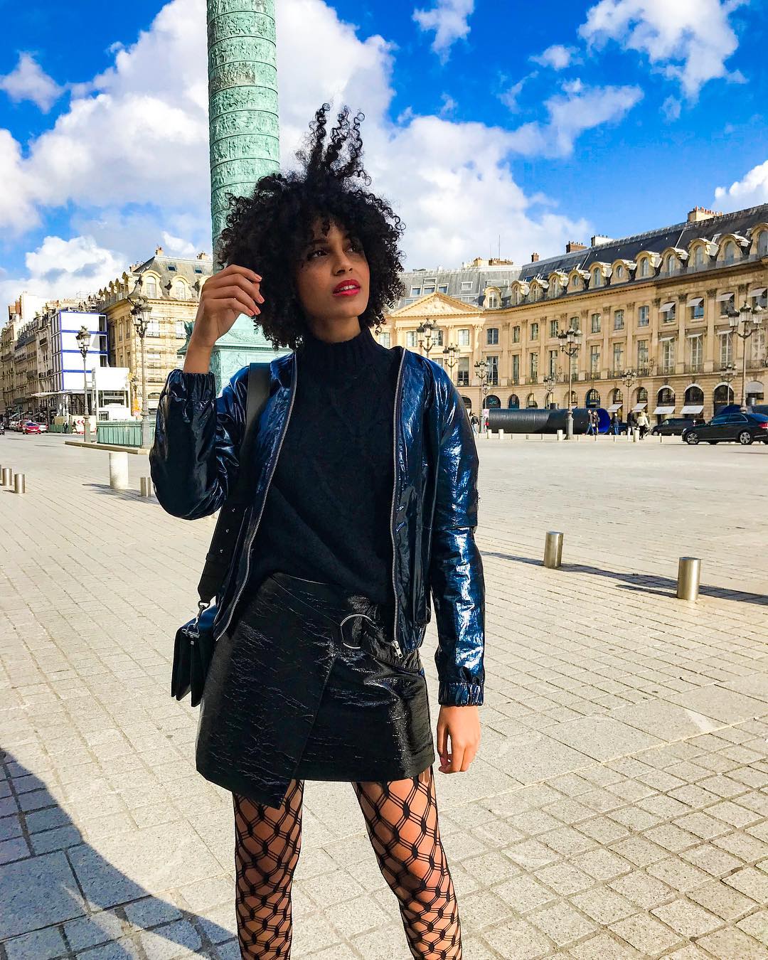 14. O corte da peça e a meia arrastão deixam o visual ousado